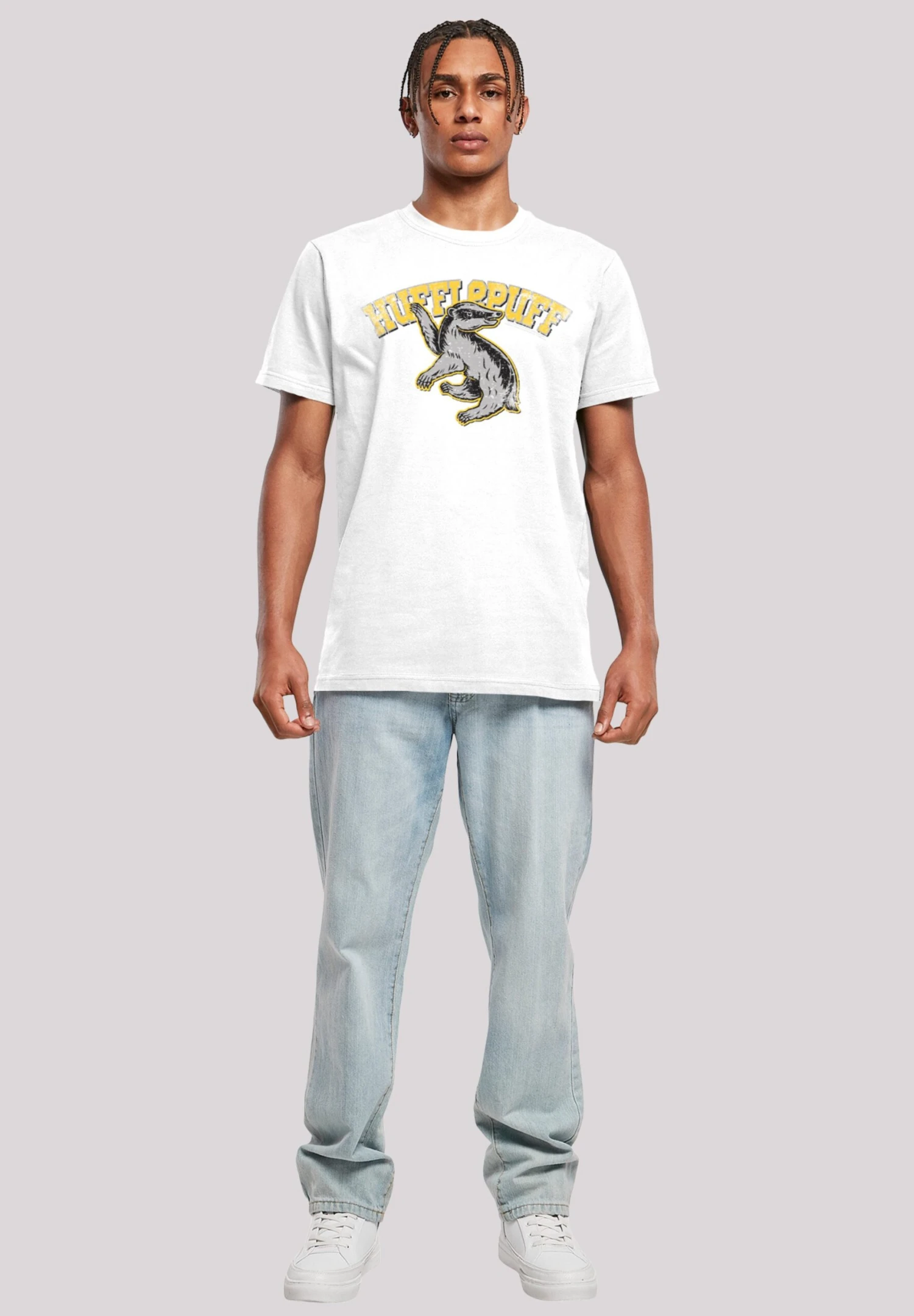 F4NT4STIC Harry Potter Hufflepuff Sport Emblem – T-Shirt Print – White