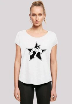 F4NT4STIC Long Cut Looney Tunes Sylvester Cartoon Stern – T-Shirt Print – White