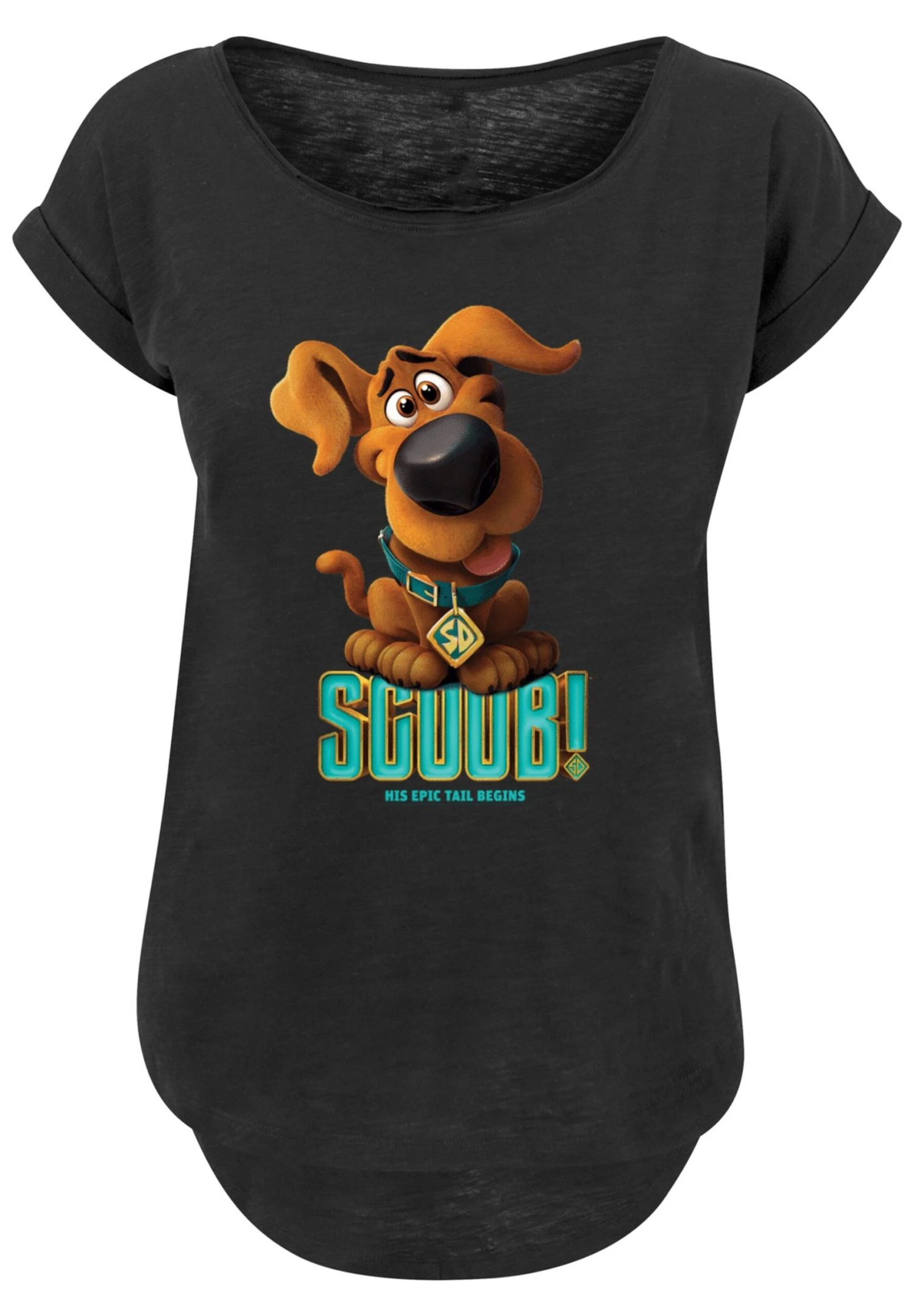 F4NT4STIC Long Cut Scooby Doo Puppy – T-Shirt Print – Black