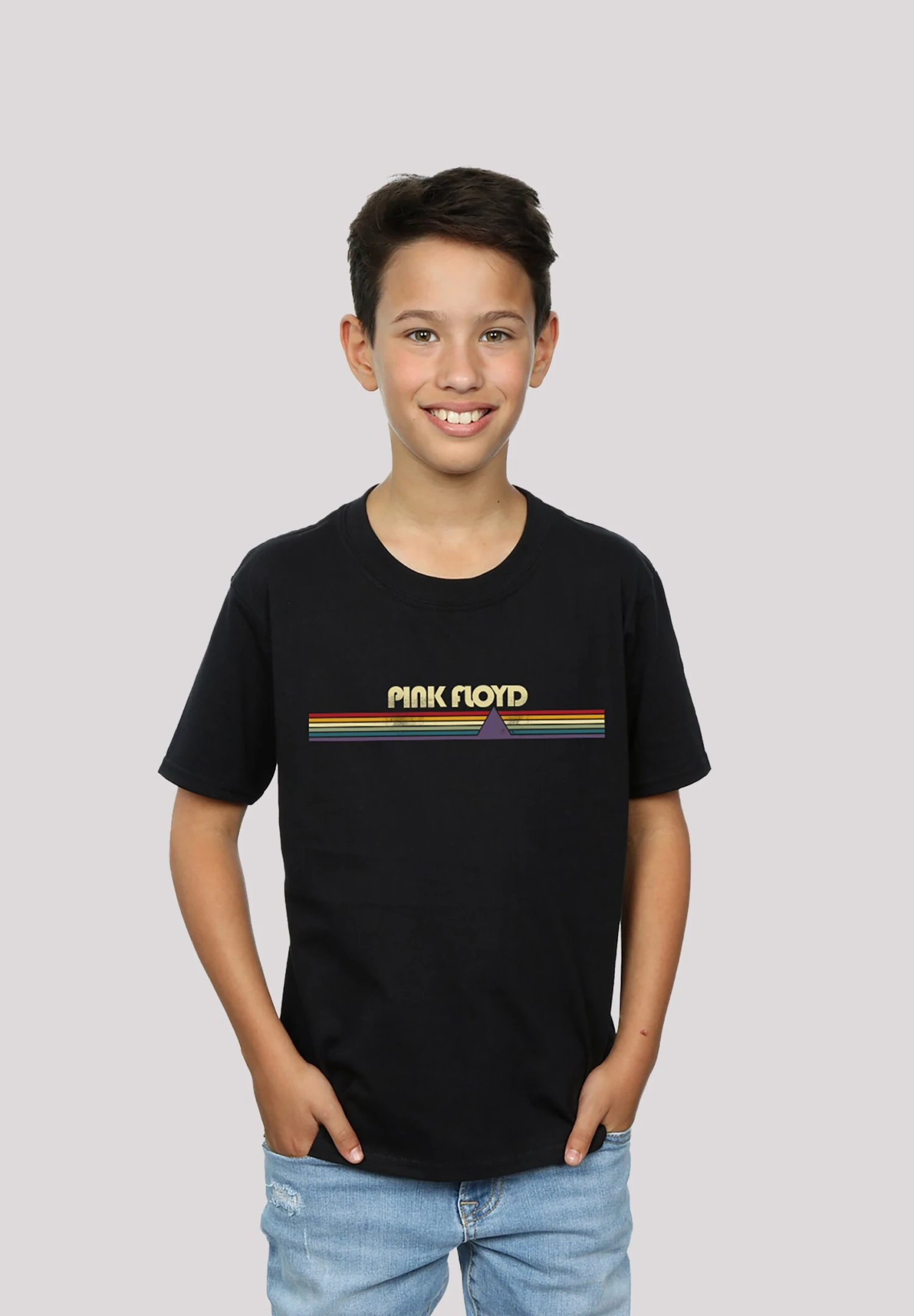 F4NT4STIC Pink Floyd Prism Retro Stripes.Premium Rock Metal Musik Band- T-Shirt Print – Black