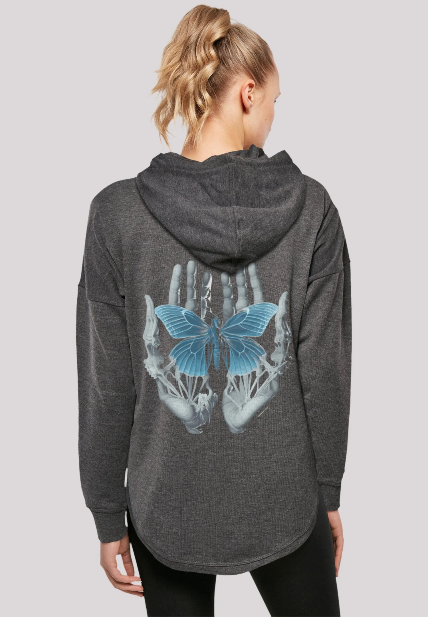 F4NT4STIC Skelett Hände Schmetterling – Sweater – Charcoal